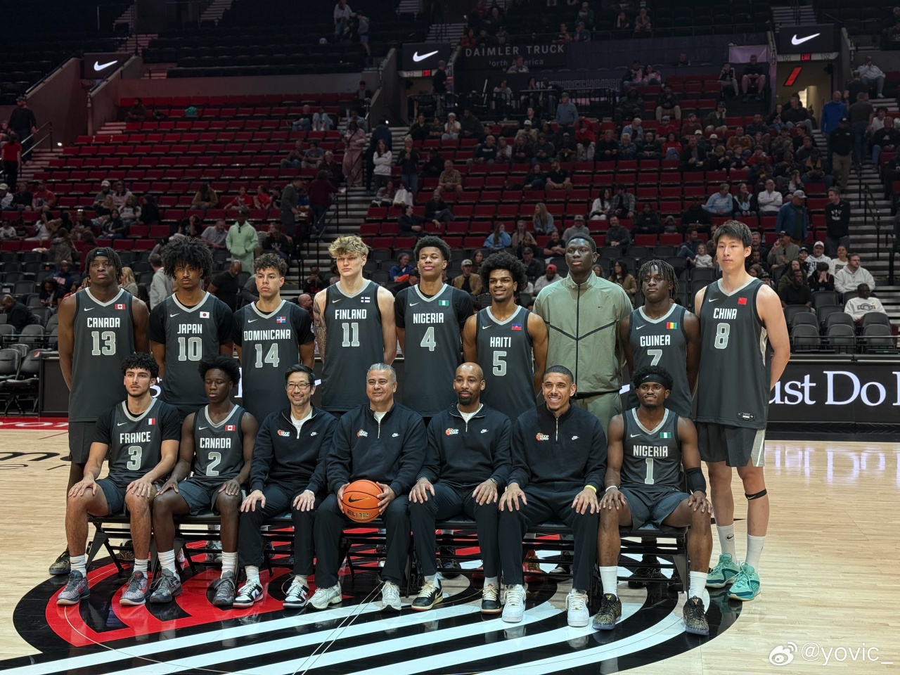 04月12日讯 2026年耐克篮球峰会,世界队对阵美国队。上半场结束时,世界队以42-43落后。