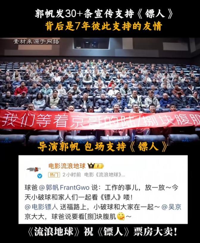 尽管《流浪地球》和《镖人》没有任何商业关系,只是因为导演郭帆和吴京私交甚笃,郭帆就化身为了电影第一宣传大使。
